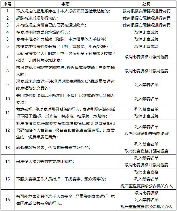 4. 不可抗力(如恶劣天气、政治因素等)发生时,组委会有权决定调整赛道或中止比赛,参赛运动员须服从调度指挥,有序离开赛道;